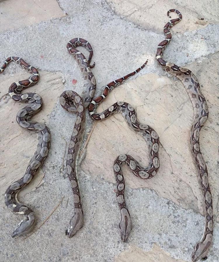 hindistan da yolu kapatan pitonu tek