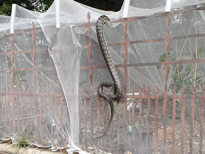 huge carpet python spotted climbing
