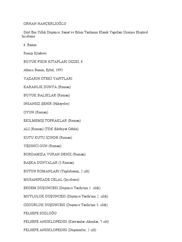 dusunce tarihi orhan hancerlioglu