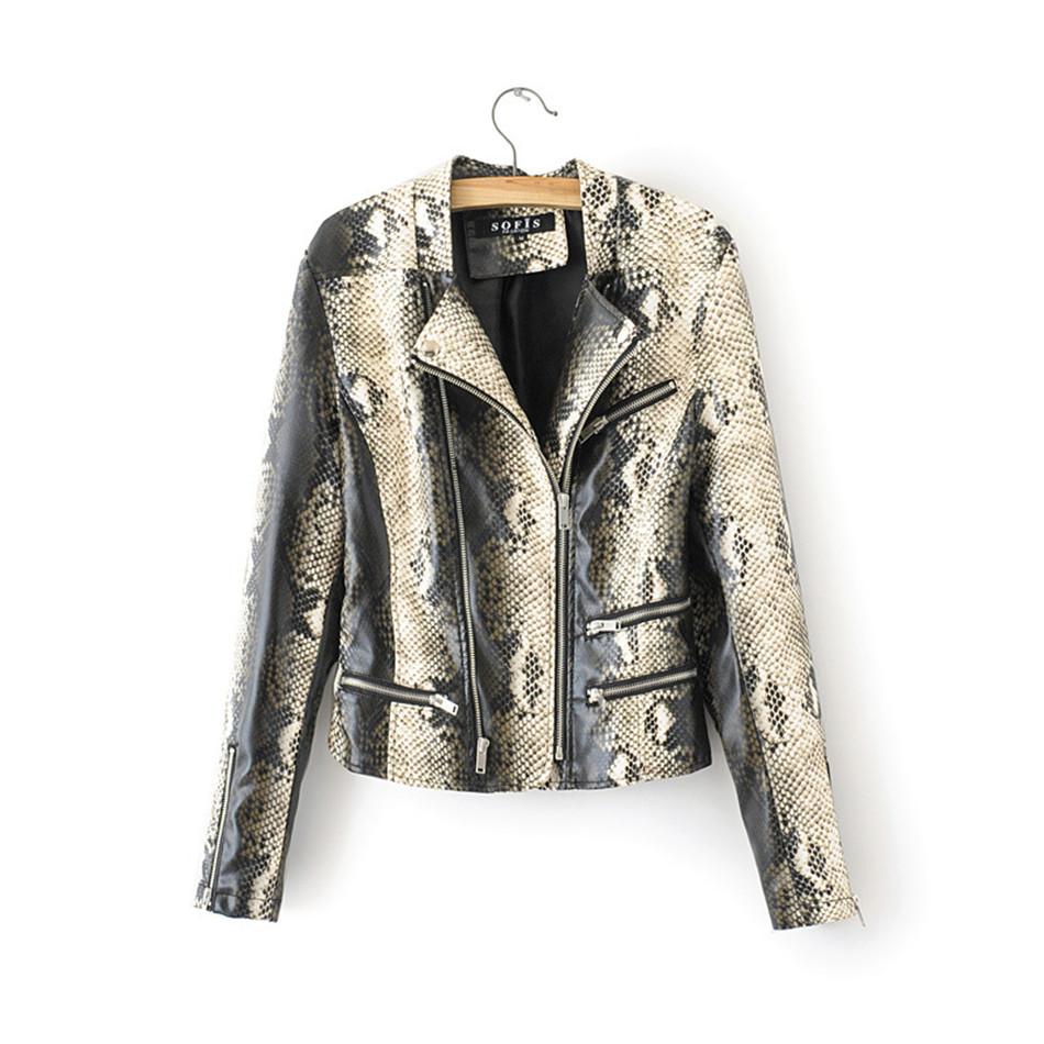 ekol yilan desenli deri mont