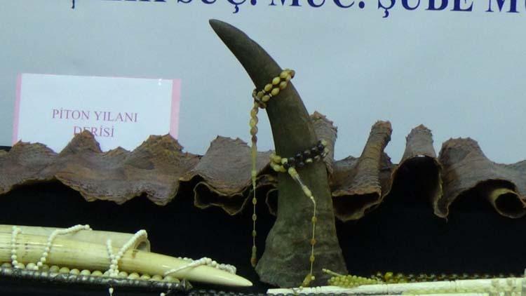 kacakcilik operasyonunda gergedan boynuzu piton yilani derisi ve fil disi ele gecirildi