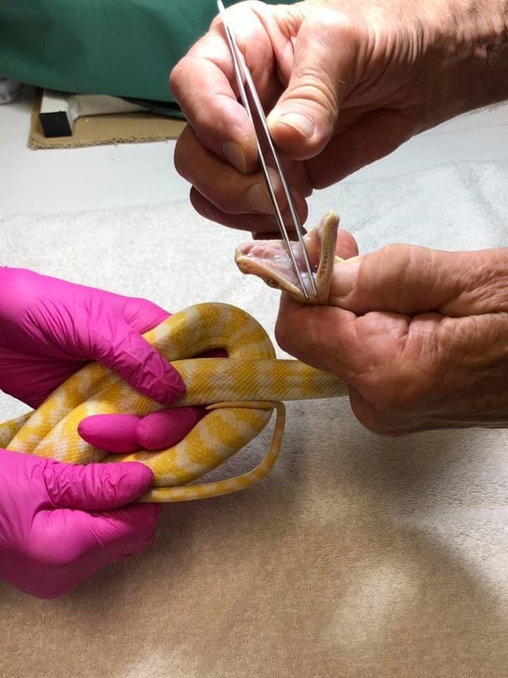 piton yilanin deri degistirmesine yardim eden veteriner