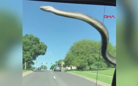 seyir halindeki otomobilin camindaki yilan korkuttu
